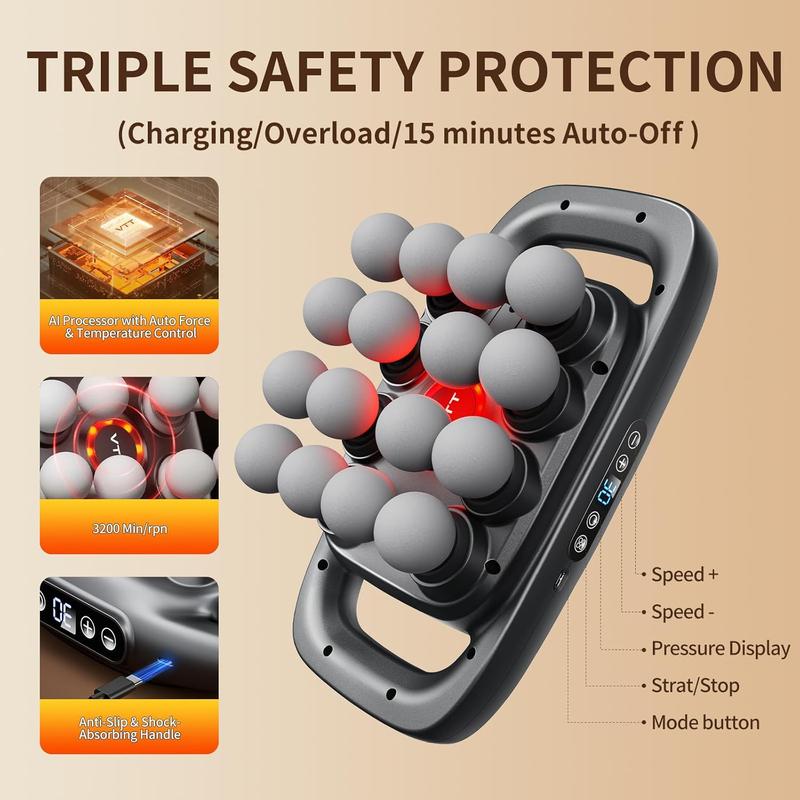 The multi-head design delivers deep, targeted vibrations to release muscle knots, improve circulation, and ease tension anywhere on your body — from neck to feet.